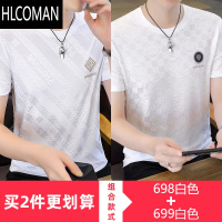 HLCOMAN男士冰丝短袖T恤夏季加肥加大码速干半袖提花体恤烫钻潮牌上衣服