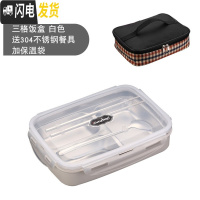 三维工匠饭盒小学生不锈钢分隔型便当盒上班族儿童分格餐盒带盖食堂餐盘 白色3格[送304勺筷]+袋子
