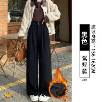 黑色糯米裤子女新款秋冬季加绒慵懒垂感小个子休闲直筒阔腿裤_378
