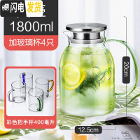 三维工匠冷水壶玻璃耐热高温防爆凉水壶家用凉白开水杯大容量茶壶套装 圆壶1800+4个杯子(400彩把)