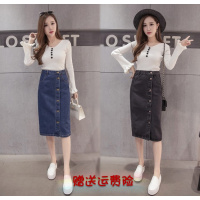 娉语秋冬韩版新高腰显瘦单排扣中长款简约牛仔a字半身包臀裙女学生潮