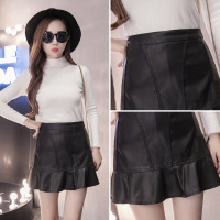 顺崇2018春春季高腰小皮裙子鱼尾包臀半身短裙a字Pu皮包裙荷叶边伞裙