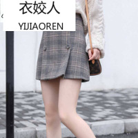 衣姣人(YIJIAOREN)2018秋冬新款女装韩版复古高腰格子毛呢半身裙小清新A字中短包臀裙咖啡色咖啡色