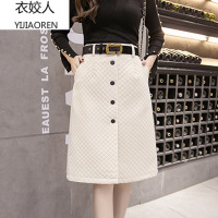 衣姣人(YIJIAOREN) 2018女装秋冬新款羊绒面哑光半身裙 A字中长款排扣加厚高腰包臀裙