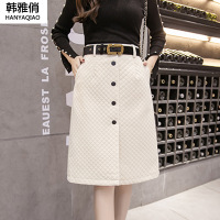 韩雅俏(HANYAQIAO)2018新品秋冬新款羊绒面哑光半身裙 A字中长款排扣加厚高腰包臀裙