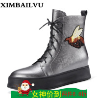 秋冬新款真皮马丁靴女平底大黄靴防水台百搭短靴磨砂学院风女靴子潮