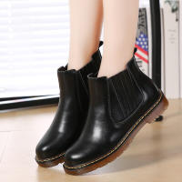 冬季新款短靴女马丁靴百搭英伦学院风平底短筒靴子加绒保暖女鞋B-M9059黑色