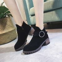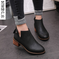 小短靴女秋2017新款韩版百搭粗跟复古靴子学生中跟学院风马丁靴潮