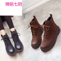 锦铭七玥2017新款马丁靴女短靴复古英伦学院风女靴系带马丁靴