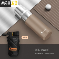 三维工匠全钢316不锈钢军保温水杯简约男士大容量户外便携定制1000 摩卡金1000+杯套保温杯