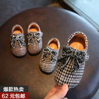 韩版小女孩英伦风格子单鞋春秋1-2-3岁女小童豆豆鞋宝宝公主皮鞋