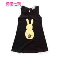锦铭七玥小金兔儿童背心纯棉夏款外贸宝宝无袖T恤女童背心裙印花兔子系带