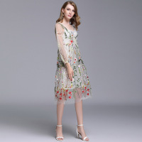 李小璐重工刺绣网纱透视连衣裙轻薄仙女裙+仿真丝小吊带夏款