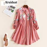 Kruidvat2017夏季女装新款时尚轻熟绣花钉珠片高腰中长上衣OYCP