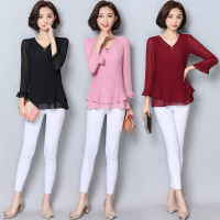 薇侣2017新品秋季新款女九分袖袖T恤百搭雪纺中长上衣小衫