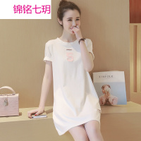 锦铭七玥018新夏季孕妇装中长上衣怀孕期短袖T恤裙潮妈白色个性