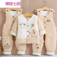 锦铭七玥婴儿棉衣套装加厚棉袄冬装背带裤男宝宝冬季棉服三件套0-6-12个月
