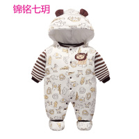 锦铭七玥冬季印花狮子简约新生宝宝长袖连体可拆套装 婴儿加厚三件套棉衣