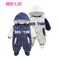 锦铭七玥婴儿哈衣爬服三件套外贸婴幼儿童套装冬款加绒欧美童装一件代发