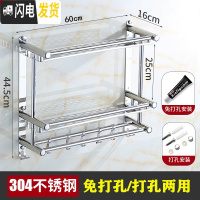 三维工匠卫生间置物架2层免打孔不锈钢304浴室放衣服用品收纳架厕所吸壁式 F款双层60cm[免打孔两用]304浴室置物架