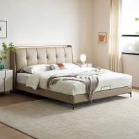 全友家居奶油风轻奢真皮床分体式可调节软靠卧室皮床双人床皮艺床软床家具