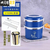 三维工匠304不锈钢保温饭盒防漏加厚单层-四层学生上班带饭简约多层便当 宝石蓝双层(1700)+保温袋(赠食格+餐具