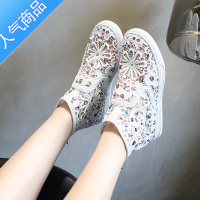 SUNTEK水钻平底女鞋带钻小白鞋高帮女夏2023新款蕾丝网面透气白色网鞋钻