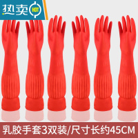 敬平家用洗碗手套加长款清洁防护器洗碗薄款耐用厨房洗衣乳胶手套女 南牛手套45CM[3双] M