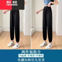 YIBUSHENG黑色冰丝运动裤女季薄款大码胖mm宽松束脚梨形身材小个子休闲裤
