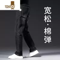 YANXU黑色牛仔裤男宽松直筒夏季薄款2023弹力大码中年款男士长裤子