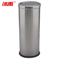 冰禹 BY-1257 不锈钢本色翻盖38*73cm圆形不锈钢垃圾桶 带内桶翻盖港式桶