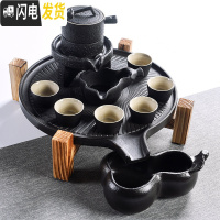 三维工匠简约日式茶道双层石磨陶瓷茶盘实木茶台茶海家用茶具套装茶杯 螺纹石磨+黑陶辰影9头