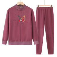 中年人冬装女奶奶保暖内衣套装加厚妈妈加绒绣花开衫套装两件套