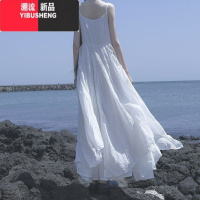 YIBUSHENG温柔风收腰显瘦白色吊带连衣裙女2024新款春海边度假a字中长裙