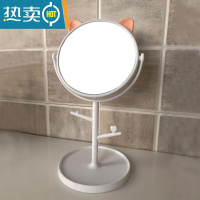 敬平创意化妆镜简约便携小镜子女梳妆台桌面美妆镜卧室宿舍台式梳妆镜便携式用镜 白色小猫