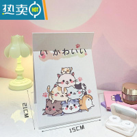 敬平折叠镜子便携桌面可立台式化妆镜女学生宿舍少女心可爱家用小镜子 大号米白色小猫送口袋镜便携式用镜