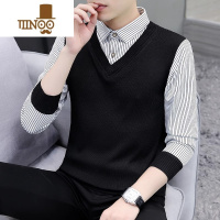 YANXU假毛衣男士2023秋季衬衫领男装上衣冬装加绒针织内搭打底衫潮
