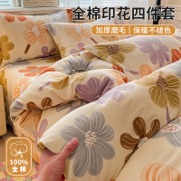 100S秋冬长绒棉磨毛四件套纯棉三件套被套床单床笠式床上用品