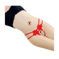 长夜漫漫 女式情趣内裤 性感镂空刺绣珠珠按摩透明开裆免脱丁字裤 蕾丝捆绑诱惑立体花朵情趣内衣真人T型裤欧美风成人用品