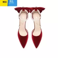 聚范红色秀禾婚鞋细跟尖头高跟鞋女单鞋新款蝴蝶结珍珠不累脚新娘鞋