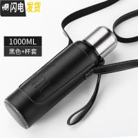三维工匠全钢大容量保温杯男女便携水杯茶杯子大号户外水壶1.2送皮套 苍劲黑1000送皮套