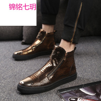 锦铭七玥韩版潮流真皮高帮鞋男士马丁靴套脚拉链短靴金属蛇皮纹夜店男鞋GD