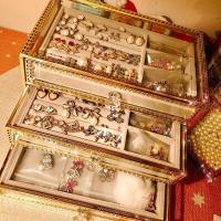 首饰收纳盒简约透明非亚克力复古玻璃收拾耳环耳钉小饰品收纳盒子