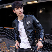 锦铭七玥厂直供2018新款春季男士皮衣修身PU皮夹克潮流机车青薄款外套