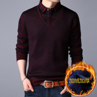 冬季男士毛衣加绒加厚冬假两件保暖立领衣服衬衫领商务修身针织衫
