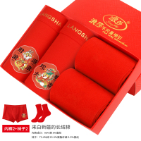 猫人男士内裤男纯棉四角结婚喜庆红色本命年鸿运平角裤红色袜子礼物红礼盒装