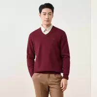 恒源祥羊毛衫男冬季加厚纯羊毛V领针织衫中年打底爸爸大码毛衣