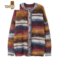 YANXU秋季美式复古彩虹撞色慵懒开衫毛衣男女宽松休闲情侣针织外套潮牌