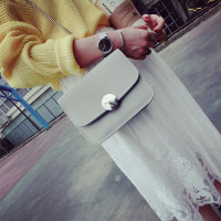 娉语2018秋冬韩版新款潮圆形锁扣磨砂小方包单肩斜跨百搭女士链条小包