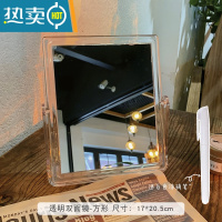 敬平ins风亚克力镜子化妆镜学生宿舍折叠家用透明台式桌面大号梳妆台便携式用镜 透明方形+按摩梳 送白色涂鸦笔